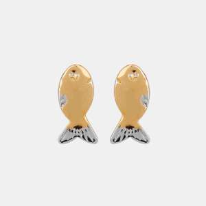 Women Gold-Plated Fish Shapped Stud ,Gold-plated,and has artificial stones,Secured with a Post-Back closure.