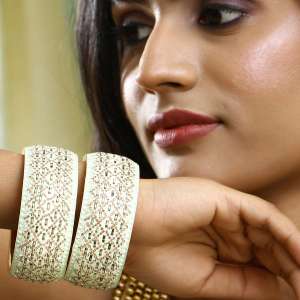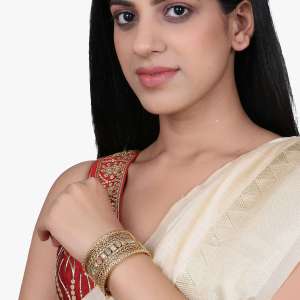 Women Gold Plated Cream Stone and Kundan Studded Designer Bangle
