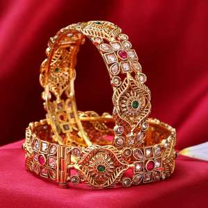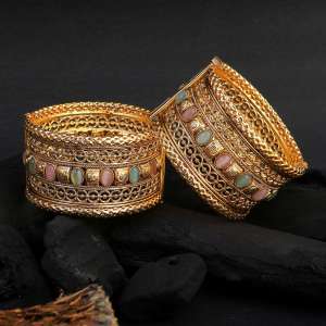 Women Gold Plated Stone Studded Designer Bangles.