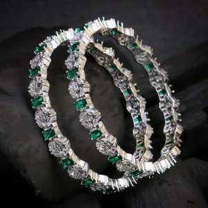 Rhodium-Plated Green Stone Bangles