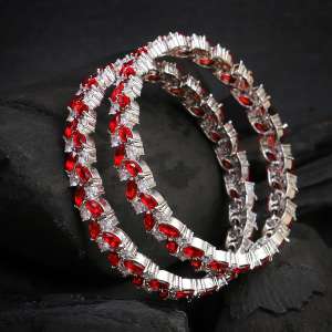 Rhodium-Plated Red Stone Bangles