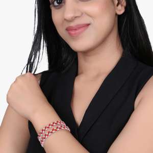 Rhodium-Plated Pink Stone Bangles