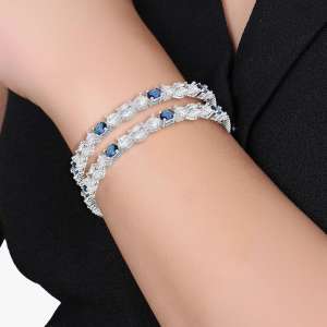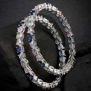 Rhodium-Plated Blue Stone Bangles