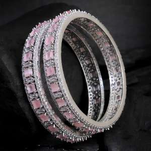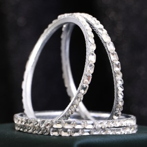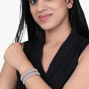 Women Rhodium Plated Stone Studded Bangles