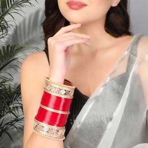 Women Gold Plated Flower Design Red Bridal Stone Kundan Wedding Chuda.