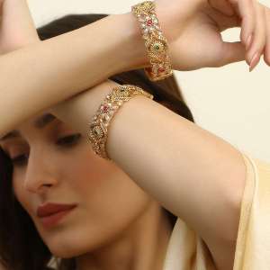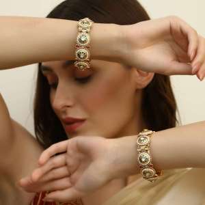 Gold Plated Stone Studded Broad Bangles. Our gold plating is long lasting and non allergic to skin.