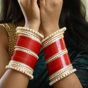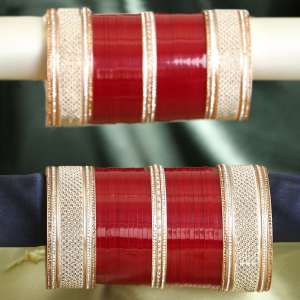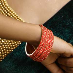 Set of 33 Acrylic bangle Red Gold-plated Stone-Studded Wedding Bridal embellished bangles