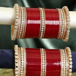 Set Of 33 Red Bridal Stone Chuda