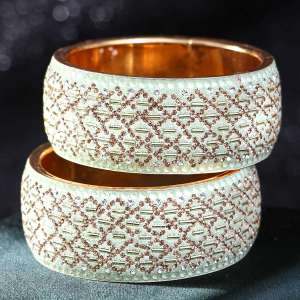 Gold Plated Stone White Lac Bangles