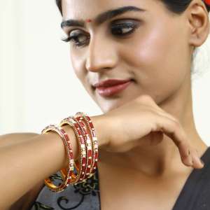 Set of 4 Gold Plated Red Stone Bangles