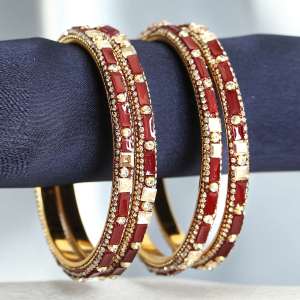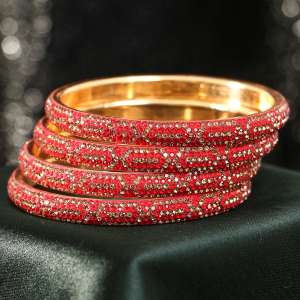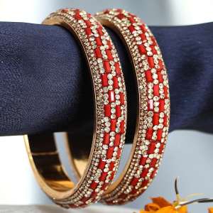 Women Set of 2 Gold Plated Red Tiny Diamond Studded Bangles.