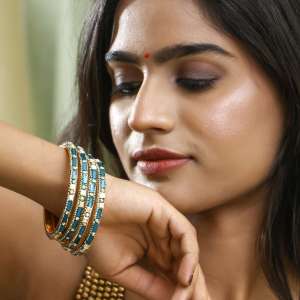 Gold Plated Mint Embellished Bangles