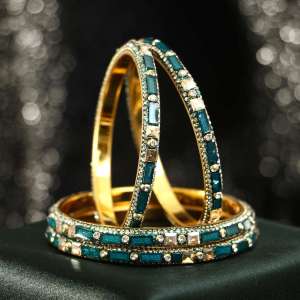 Women Gold Plated Mint Green Embellished Design Bangles.