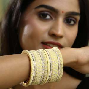 Gold Plated Stone Yellow Lac Bangles