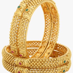 Women Set of 2 Gold-Plated Stone-Studded Elephant and Doli Temple Bangle.