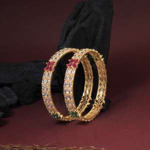 Set of Two 24 CT gold-plated CZ Stone-studded handcrafted bangles