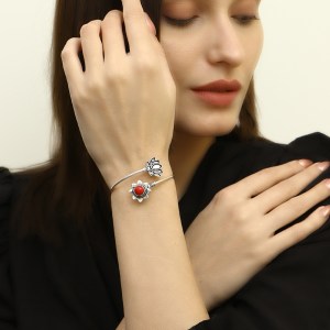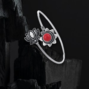 Women Red Floral Oxidised Silver Plated Adjustable Ethnic Bracelet