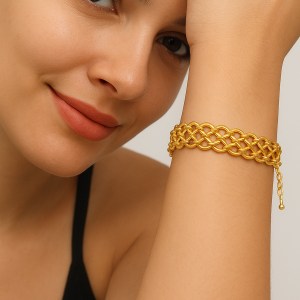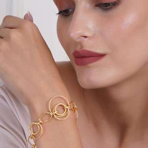 Women Gold-Plated Handcrafted Link Bracelet. Gold-plated,Closure: S-Hook,