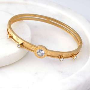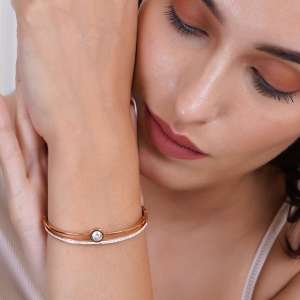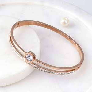 Women Rosegold-Plated Stone Studded Bangle style bracelet.