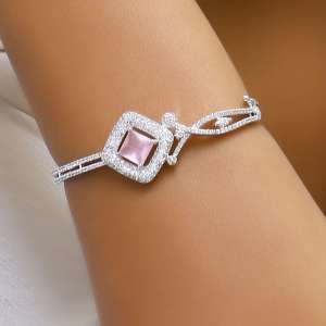 Women 24CT SilverPlated Rhodium Silver-Plated Pink CZ Stone-Studded Bangle-Style Bracelet,Base material:Brass,Plating: Silver-plated,Closure: Slip-On,