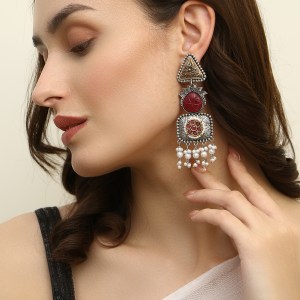 Women Silver Plated Handcrafted Drop Earing ,Silver-plated,and has artificial stones,Secured with a Post back closure.