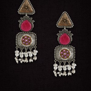 Oxidised Stone Pearl Tessel Earrings