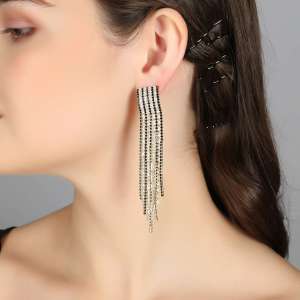 Women Earrings Rhodium-Plated beautiful White Cubic Zirconia Array Drop