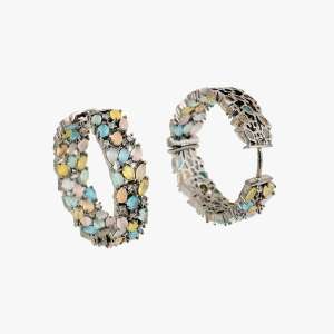Women Multicolor Silver-Plated Hoop Earrings, ,and has artificial stones,Secured with a fraction Back closure.