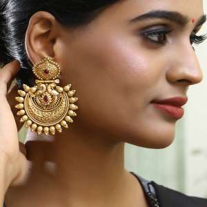 This gorgeous temple jewelry earrings set pairs best with traditional Indian outfits. It looks stunning for both day & nighttime wear. It is plated with high-quality polish & studded with excellent precision for long-lasting wear. Ideal gift for Valentine’s, Thanksgiving, Mother’s Day, Friendships Day, Christmas, Birthday, & Anniversary.