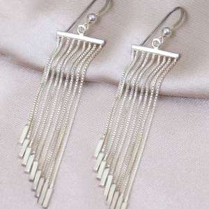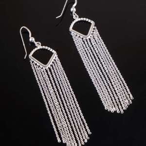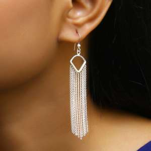 92.5 Sterling Silver Long Chain Tessel Dangle Earrings, Secured with a Push-Back closure.