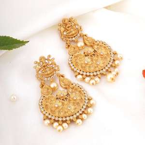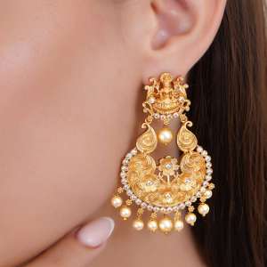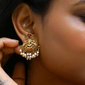 Gold Plated Traditional Stone Studded Laxmi Design Earrings