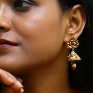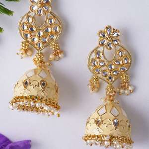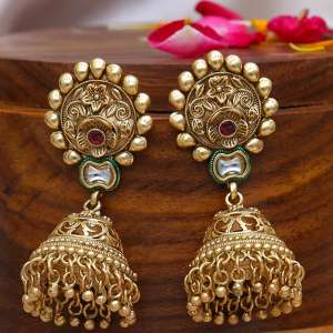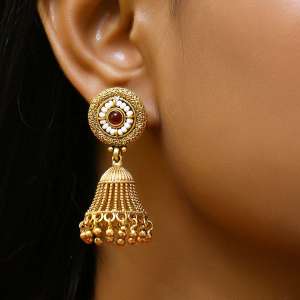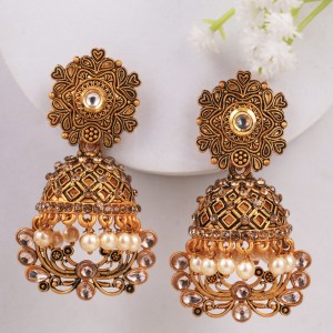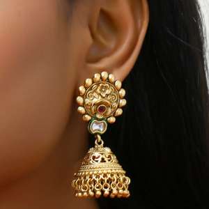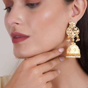 Gold Plated Traditional Stone Studded Unique Design Jhumkas