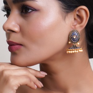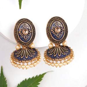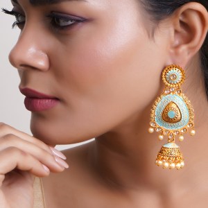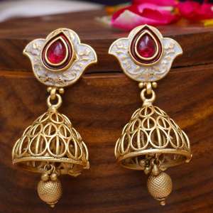 Gold Plated Meenakari Jhumki Earrings. Our Gold Plating is long lasting and non-allergic to skin. It Give you a beautiful elegant look with our outfit.