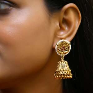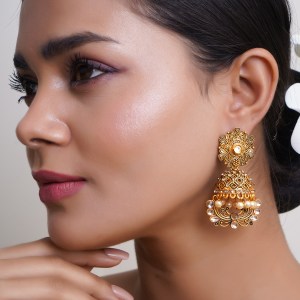 Gold Plated Traditional Stone Pearl Floral Design Jhumkas