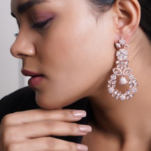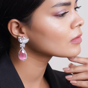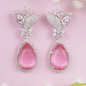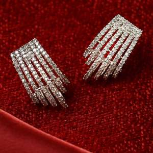 Women Rohdium Plated Zircon Stone Studded Earrings. Our Rohdium Plating is long lasting and non-allergic to skin.