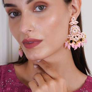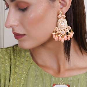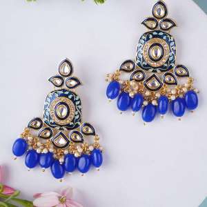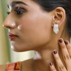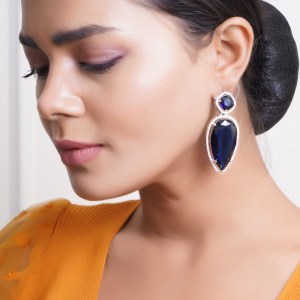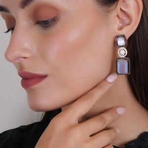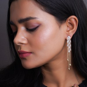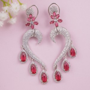Women Rohdium-Plated Stone-Studded Drop Earrings. Our Rohdium Plating is long lasting and non-allergic to skin. It Give you a beautiful elegant look with our outfit.