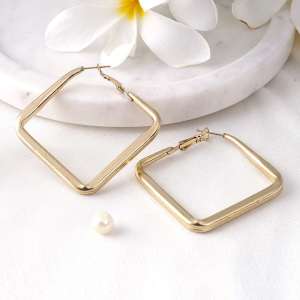 Women Gold-Plated Sqaure Shape Contemporary Hoop Earrings with Lever Closure. Our Gold Plating is long lasting and non-allergic to skin. It Give you a beautiful elegant look with our outfit.