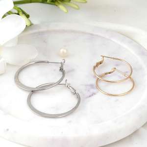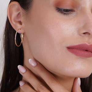 Women Gold-Plated Circular Shape Contemporary Two Hoop Earrings with Lever Closure. Our Gold Plating is long lasting and non-allergic to skin. It Give you a beautiful elegant look with our outfit.