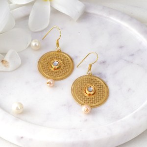 Gold Plated Mandala Design Pearl Tessel Earrings