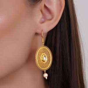 Gold Plated Kundan Studded Mandala Design Hanging Pearl Traditional Earrings. Our Gold Plating is long lasting and non-allergic to skin. It Give you a beautiful elegant look with our outfit.
