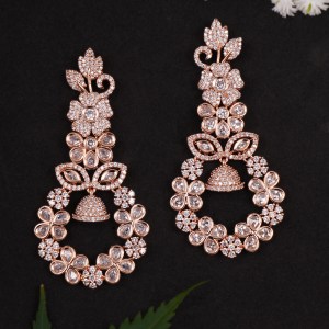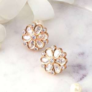 RoseGold Plated CZ Stone Studded Flower Shape Earrings