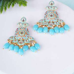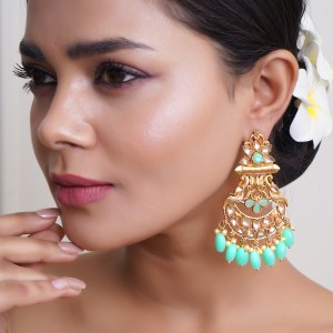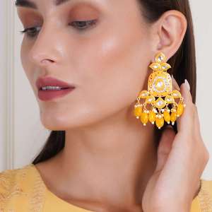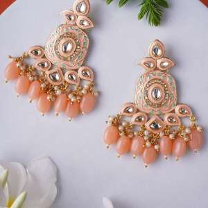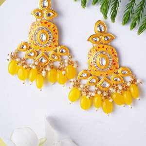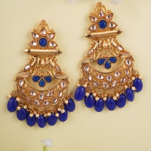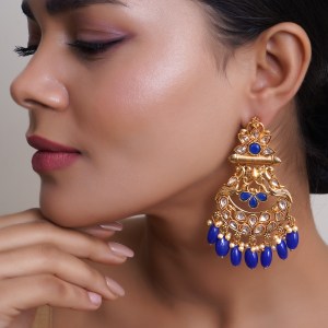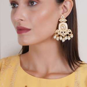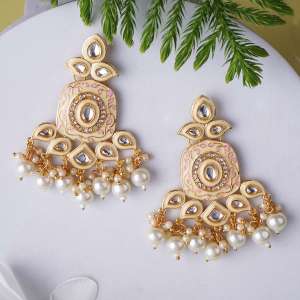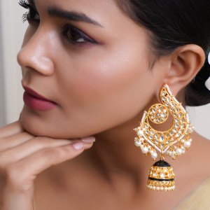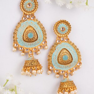 Women Gold Plated Kundan Studded and Pearl Tessels Drop Earrings. Our Gold Plating is long lasting and non-allergic to skin. It Give you a beautiful elegant look with our outfit. We have lauching our new colorful color that matches with all your colorful outfits