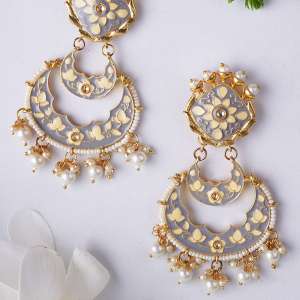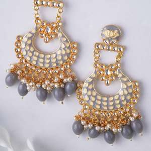 Grey & Gold-Toned Floral Design Jhumki Tessel Kundan Studded Traditional Earrings. Our Gold Plating is long lasting and non-allergic to skin. It Give you a beautiful elegant look with our outfit.