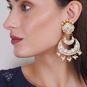 Women pearl gold western hoop bali earrings are elegant accessories that blend classic charm with a touch of sparkle. Crafted with a gold-toned finish, these earrings feature intricately designed floral motifs, embellished with shimmering rhinestones for added brilliance. Perfect for elevating both everyday and special occasion outfits, these studs exude sophistication and timeless style. Our Gold Plating is long lasting and non-allergic to skin