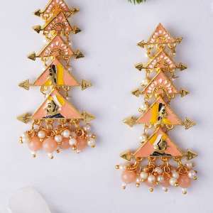Women Gold Plated Pearl Studded and Tessels Flower Dangler Earrings. Our Gold Plating is long lasting and non-allergic to skin. It Give you a beautiful elegant look with our outfit. We have lauching our new colorful color that matches with all your colorful outfits