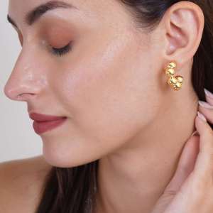 Women Gold Plated Sphere Beads Earrings. Our Gold Plating is long lasting and non-allergic to skin.