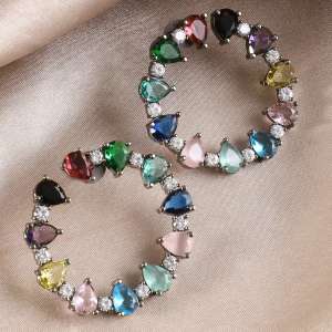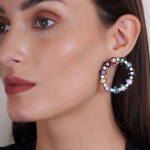 Gun Metal Polish Multicolor Crystal Stone Studded Earrings