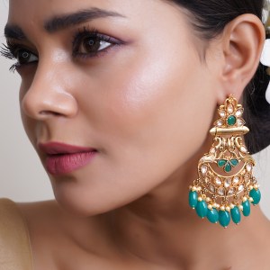 Women Gold Plated Kundan Studded and Pearl Tessels Leaf Design Dangler Earrings. Our Gold Plating is long lasting and non-allergic to skin. It Give you a beautiful elegant look with our outfit. We have lauching our new colorful color that matches with all your colorful outfits
