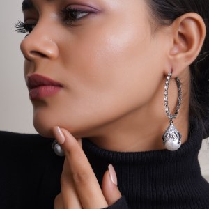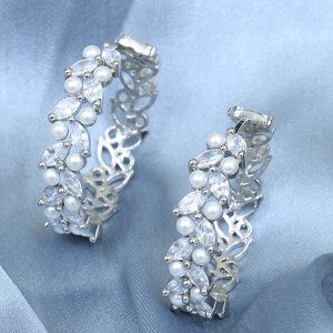 Elegant and timeless, these silver-plated hoop earrings feature sparkling CZ stones and lustrous pearl beads, perfect for adding a touch of sophistication to any outfit.