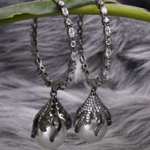 Gun Metal Plated Australian white pearl Stone Studded Jhumkis